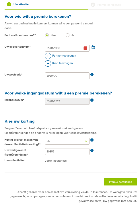 5. Kies uw korting: vul in JA en code 30852 (JoHo Insurances)