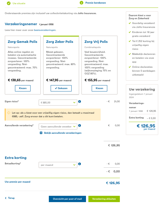 1. Maak een keuze uit de pakketten Zorg Gemak Polis, Zorg Zeker Polis of Zorg Vrij Polis